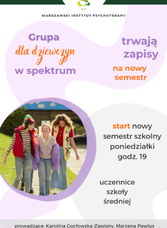 Grupa, która rozpocznie się w najbliższym semestrze ma jeszcze wolne miejsca, dla dziewczyn w szkole średniej. Spotkania w poniedziałki o 19:00 Spotkanie poprzedzone konsultacją. Zapisy przyjmujemy telefonicznie 514 900 604.
