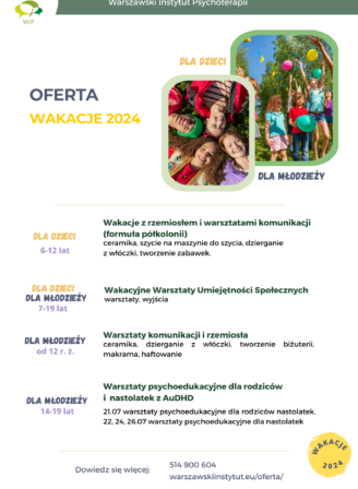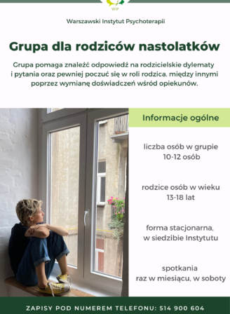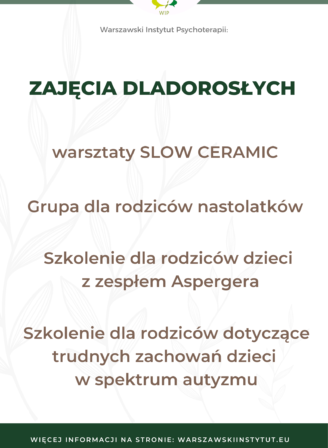 Jeśli jesteście Państwo rodzicami nastolatka i szukacie drogi do zrozumienia Waszego dziecka, to zapraszamy na zajęcia wspomagające dla rodziców prowadzone w Warszawskim Instytucie Psychoterapii. Naszym zadaniem jest wzbogacenie repertuaru metod wychowawczych […]