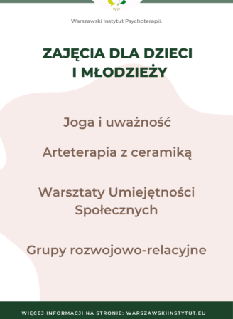 Nowa forma wsparcia w WIPie! W odpowiedzi na liczne zapytania, wprowadzamy nową propozycję grupowego wsparcia w Warszawskim Instytucie Psychoterapii. Nasze terapeutki, Marzena Pawlus i Karolina Gocłowska – Zawisny, poprowadzą warsztaty […]