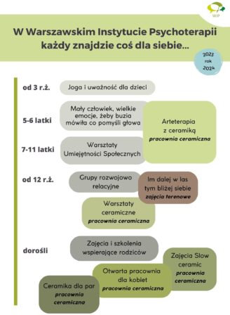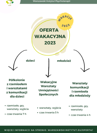 Z nowym rokiem szkolnym ruszyły zajęcia Treningu Umiejętności Społecznych, które odbywają się w piątkowe popołudnia w placówce Warszawskiego Instytutu Psychoterapii. W dwóch grupach są jeszcze dostępne miejsca: dla 6-letniej dziewczynki […]