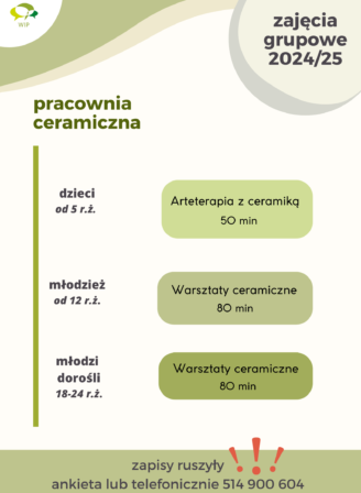 Ruszamy z propozycją dla nastolatków, którzy chcieliby spędzać czas z rówieśnikami, rozwijać swoje umiejętności komunikacji, ale też rzemiosła, uczestnicząc w zajęciach w naszej pracowni ceramicznej. Szczegóły TUTAJ Zapisy: 514 900 […]