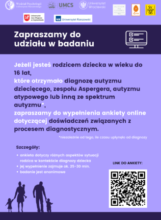 Zachęcamy do udziału w badaniu rodziców dzieci do 16 r.ż. z diagnozą spektrum autyzmu.